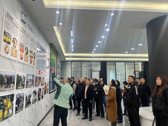 抵達企業后,在四川原森態農業開發有限公司常務副總經理陳均的帶領下,黨員們先后參觀了柚類種植基地、種質資源圃以及產品研發與加工車間。在種植基地,大家實地查看柚子生長態勢,深入了解柚類種質資源保護、培育技術及規模化種植經驗。在加工車間,通過觀摩柚香調味茶、柚皮糖、蜂蜜柚子茶等系列產品的研發過程與生產流水線,直觀感受企業從“鮮果銷售”到“多元產品”的產業鏈延伸思路,學習其在農產品深加工工藝、質量管控等方面的先進做法。