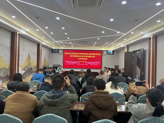 參觀結束后,校企雙方開展了深度交流研討。四川原森態農業開發有限公司常務副總經理陳均主持會議并介紹了企業發展歷程、技術創新難點及未來規劃,重點分享了在農產品產業鏈拓展、品牌打造中的實干經驗與創新舉措。隨后,機械工程學院院長任小鴻介紹了學院黨總支建設情況及學科專業特色。黨員們結合學院機械工程專業優勢,圍繞“技術賦能農產品種植與加工”“校企合作助力鄉村產業振興”等核心議題展開熱烈討論,就農業機械設計改造、生產流水線優化、自動化設備應用等方面提出針對性建議,雙方就潛在合作方向達成初步共識。部分黨員還結合自身工作學習實際,分享了參觀感悟,探討如何將企業實干精神、創新理念融入日常教學科研與管理工作。