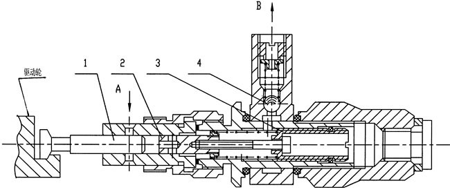 1—工作活塞 2—控制活塞 3—調節螺套 4—單向閥 | |||||||||||||||