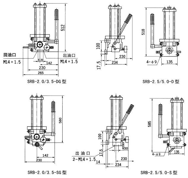 七、使用說明 1、手動潤滑泵應垂直安裝,泵的上方及周圍要留有指示桿上升補脂操作的空間。需在室外或環境惡劣的場合安裝時,應將泵置于防護罩內 2、貯油筒內無潤滑劑時,不準操縱手柄。 3、向貯油筒內加注潤滑脂,必須使用專用的手動或電動加油泵從加油口充填;潤滑油從貯油筒頂部加入。 4、使用壓力不允許超過泵的公稱壓力。 5、安全保險片不允許二片重疊使用,不允許采用其它材料代用。 6、單線型泵上回油指示器的作用是操作者通過觀察指示器活塞的運動行程,就可知道潤滑系統的供油潤滑狀況。使用時,先計算好各潤滑部位所需的給油量,配置分配器,并把主分配器上多設的一個出油口與手動潤滑泵的回油口相接通,使潤滑劑返回到指示器中,如返回的油量累計達到3.2 8mL,則指示器的活塞指示桿全部伸出,表示各潤滑點已根據需要完成一個周期的給油,應停止供油并把回油指示器的指示桿推進。