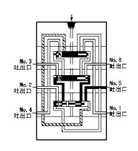 6、流入的潤滑劑推動活塞B向右運動、右腔的潤滑劑壓向NO.5吐出口,經(jīng)外部配管送向潤滑點。當(dāng)活塞B移動到至右極限時活塞A左腔開始進(jìn)入潤滑劑。