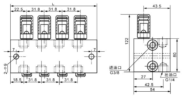 若需相應上下出口合并時,只要將孔內的螺釘擰出,把上或下不用的那個出油口用G1/4螺塞封堵以防灰塵侵入。 六、訂貨須知 | ||||||||||||||||