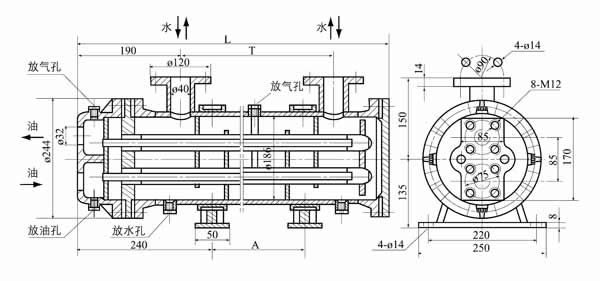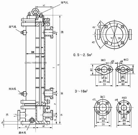 一、使用條件 與GLLQ型列管式冷卻器相似,產品適用于冶金、礦山、輕工、電力、化工等工業部門的液壓與潤滑裝置,將熱工作油冷卻到要求的溫度;冷卻器的設計最高溫度為100℃~120℃,工作壓力≤1.6MPa,傳熱系數為348~407w/m2.k,(若采用翅片管換熱,則傳熱系數為523~580W/m2·k,但允許介質粘度為10~50cSt)。下面列出的LQ型冷卻器則規定介質粘度為10~326cSt,主要技術參數如下表: |